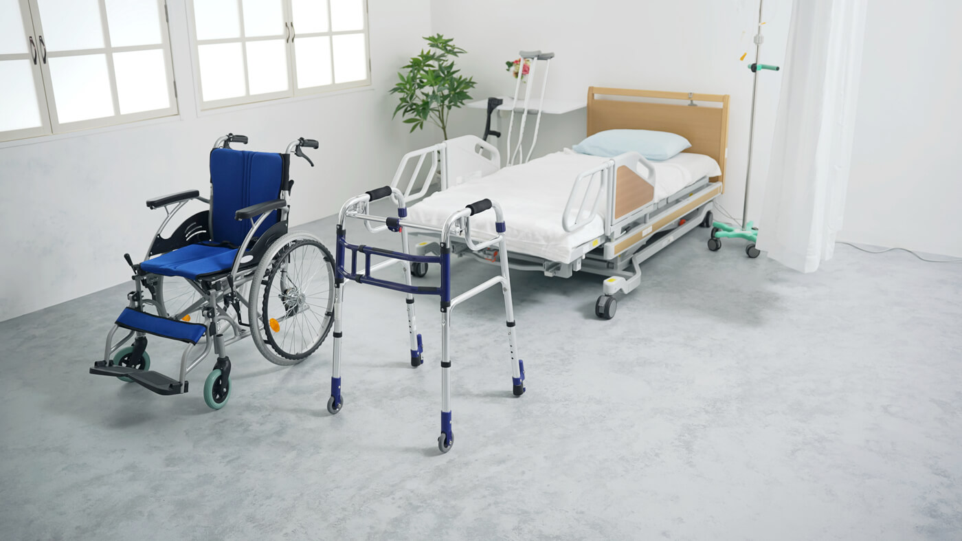 - 車いす、介護ベッド、手すり、歩行器、シャワーチェア、ポータブルトイレなど、日常動作を支える豊富な用具を取りそろえています。